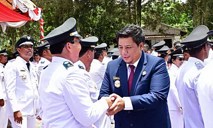 topmetro.news – Mendasari UU Nomor 3 Tahun 2024 tentang Perubahan Kedua Atas UU Nomor 6 Tahun 2014 tentang Desa, Bupati Samosir Vandiko Gultom melakukan pengukuhan terhadap 94 kepala desa se-Samosir di halaman kantor bupati, Kamis (12/9/2024).