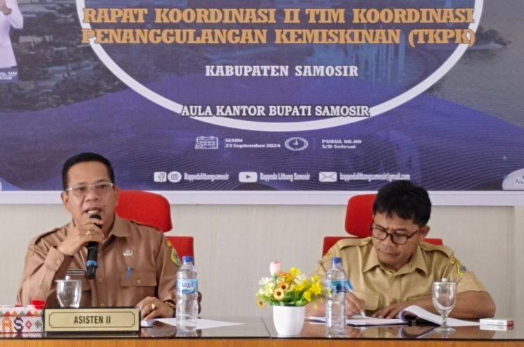 topmetro.news – Pemkab Samosir melalui Asisten II Hotraja Sitanggang ST MM membuka Rakor II Tim Koordinasi Penanggulangan Kemiskinan (TKPK) Tingkat Kabupaten Samosir Tahun 2024. Rapat koordinasi digelar di Aula Kantor Bupati Samosir, Senin (23/9/2024).