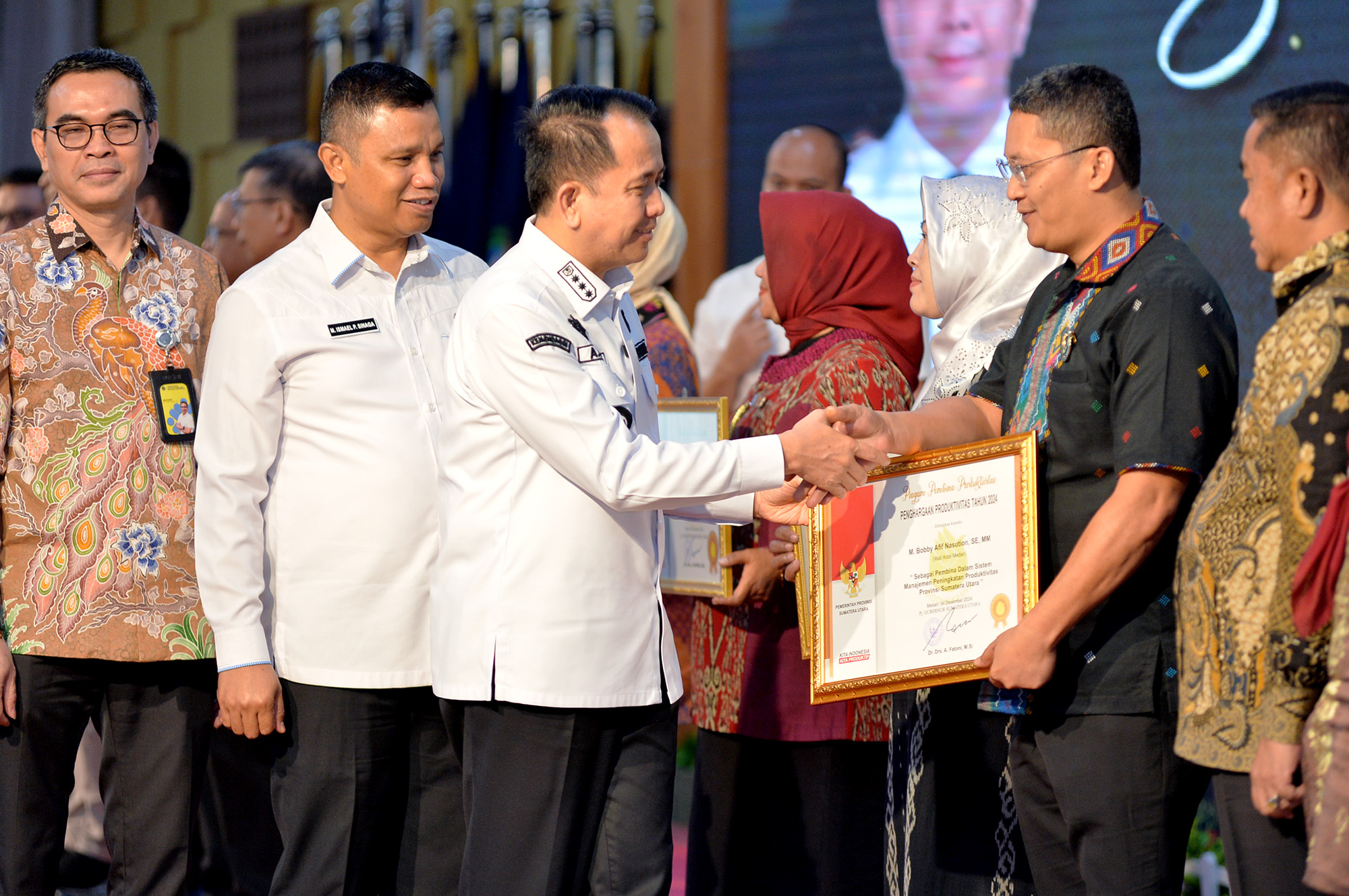 Dalam kesempatan ini, Fatoni juga menyerahkan penghargaan Produktivitas Siddhakarya Sumut 2024 kepada sejumlah perusahaan, Walikota dan Bupati. Pemberiaan penghargaan tersebut sebagai upaya pemerintah untuk memotivasi perusahaan dalam meningkatkan produktivitas serta inovasi. Terdapat dua kategori penghargaan yang diberikan, yakni Kategori Perusahaan Kecil Kualifikasi Unggul dan Kategori Perusahaan Berkembang, serta Lencana Penghargaan Pembina Produktivitas.