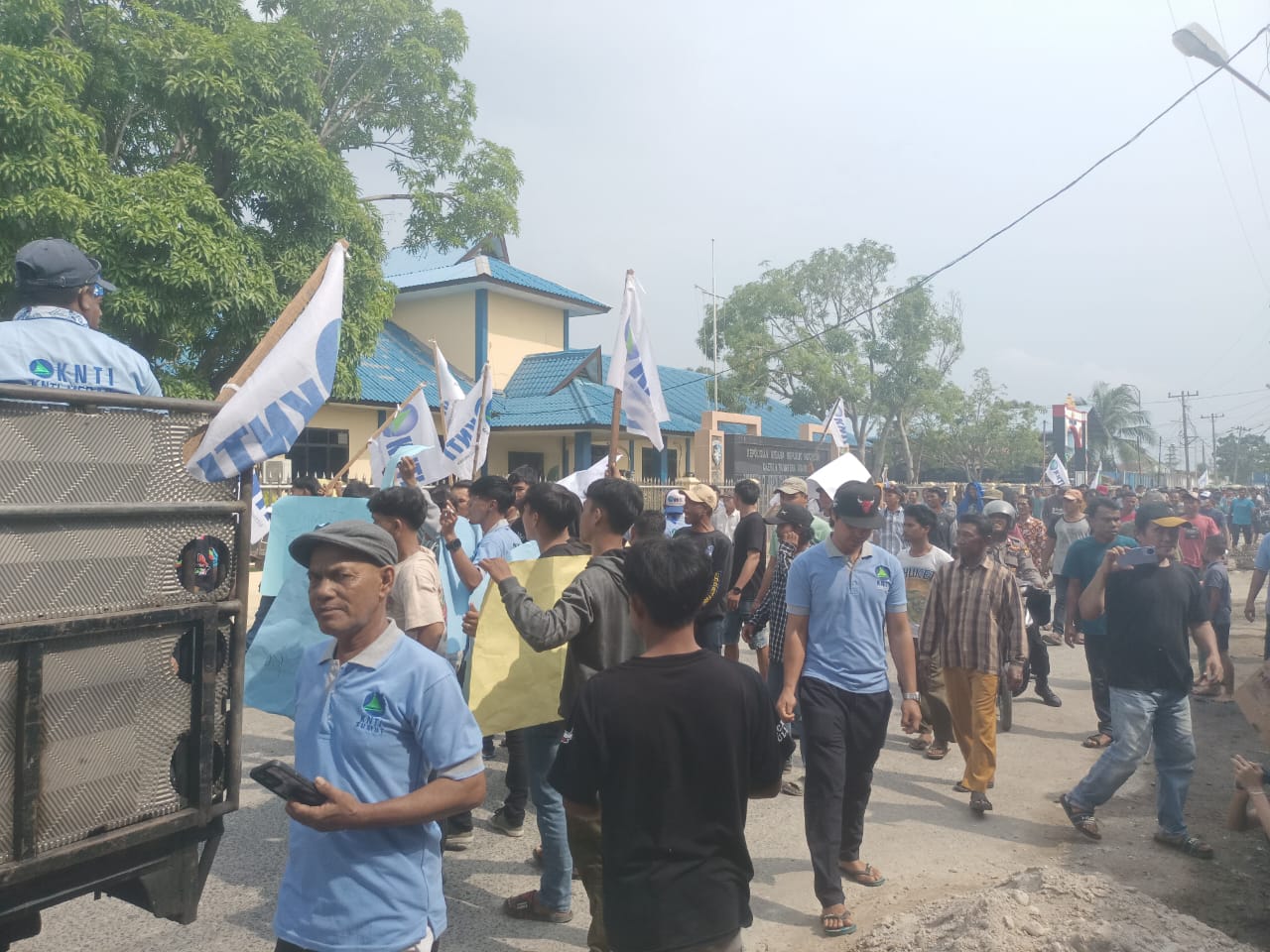 Setelah mendapatkan tanggapan dari Ditpolairud Polda Sumut, ratusan nelayan yang mengendarai puluhan angkot bergerak melanjutkan aksinya menuju Stasiun PSDKP di Gabion Belawan.