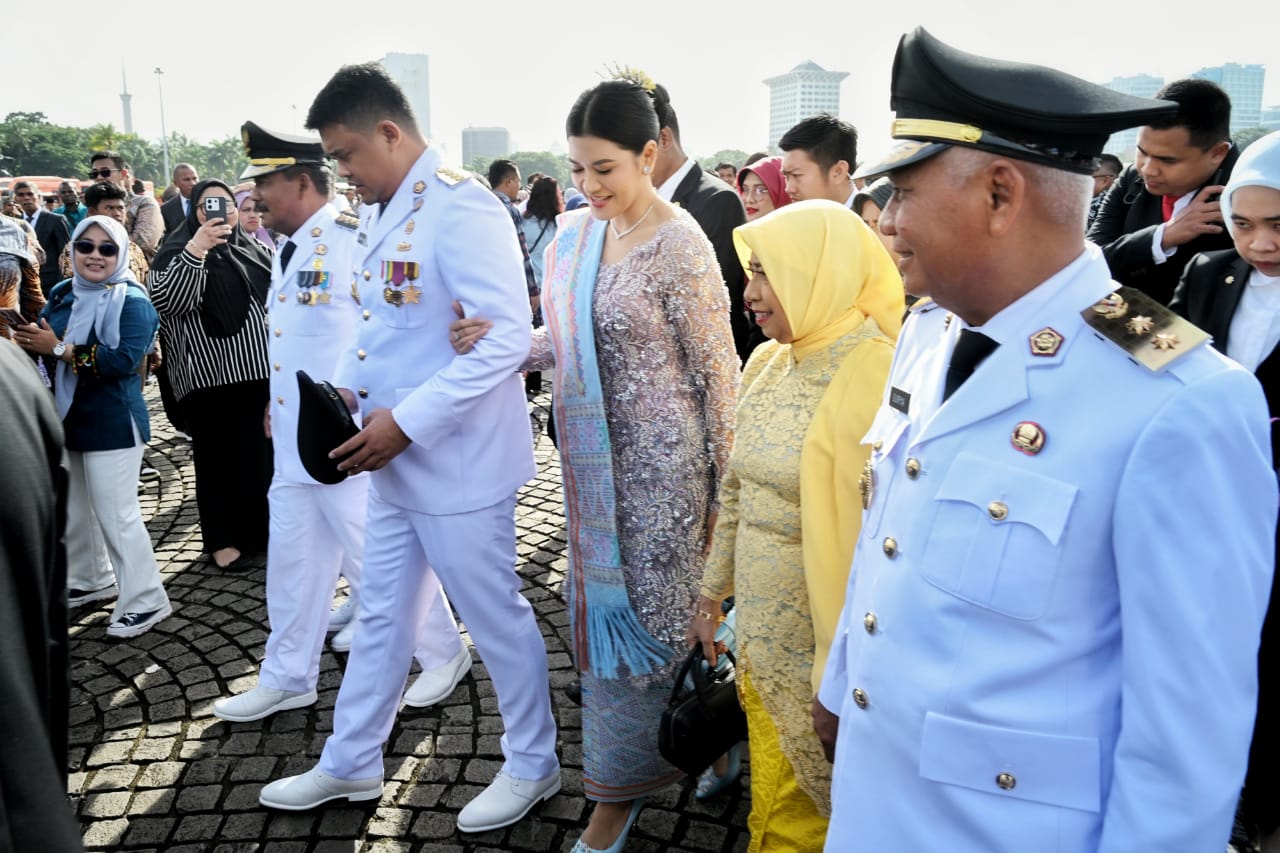 Bobby Afif Nasution hadir di Monas didampingi istrinya Kahiyang Ayu dan ketiga anaknya, sedangkan Wakilnya, Surya juga datang bersama keluarganya termasuk istrinya Titiek Sugiharti. Mereka bersama kepala daerah lainnya kemudian berjalan kalau dari Monas diiringi drumband menuju Istana Negara.
