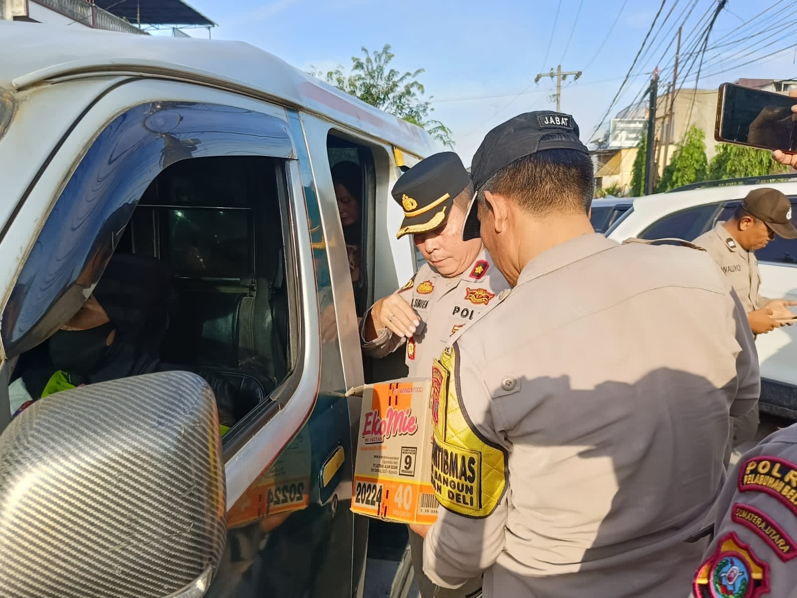 Kapolsek Medan Labuhan Kompol Tohap Sibuea, S.E., M.H., memimpin pembagian takjil gratis. (Foto: Istimewa)