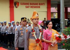 TOPMETRO.NEWS- Wali Kota Pematangsiantar Wesly Silalahi SH MKn dan Wakil Wali Kota Herlina bersama Forkopimda menghadiri Penyambutan Kapolres Pematangsiantar yang baru AKBP Sah Udur Togi Marito Sitinjak SH SIK MH. Penyambutan dengan tradisi Pedang Pora dilaksanakan di Mapolres Pematangsiantar, Jalan Sudirman, Selasa (25/03/2025) pagi.
