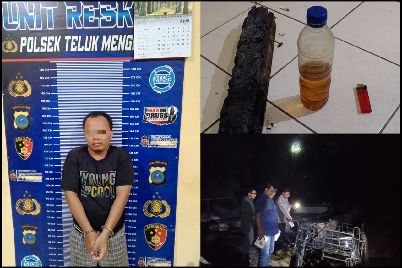 Topmetro.news, Sergai – Aksi pembakaran rumah semi permanen yang terjadi di Dusun VI Desa Sialang Buah, Kecamatan Teluk Mengkudu, Kabupaten Serdang Bedagai, berhasil diungkap jajaran Polsek Teluk Mengkudu Polres Sergai dalam waktu singkat. Pelaku bernama Nahor Sagala alias N S (40) berhasil diamankan hanya satu jam setelah kejadian, tepatnya pada Rabu (16/04/2025) dini hari.