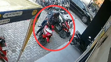 Terlihat dari rekaman CCTV dua pelaku yang berboncengan dengan mengendarai sepeda motor metik Mio warna merah BK 4104 MBI dengan berkemeja batik terlihat jelas mengambil sepeda motor BK 4271 AMI milik korban.