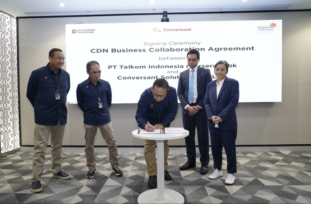 topmetro.news, Jakarta – PT Telkom Indonesia (Persero) Tbk (Telkom) dan Conversant Solutions Pte Ltd (Conversant) resmi menjalin kerja sama strategis dalam penyediaan layanan Content Delivery Network as a Service (CDN as a Service/CaaS) di Indonesia. Layanan CDN as a Service yang ditawarkan Telkom merupakan solusi distribusi konten digital yang cepat, efisien, dan aman, dirancang khusus untuk menjawab tantangan perusahaan dalam memastikan kecepatan dan keamanan distribusi konten seperti video, aplikasi OTT, maupun layanan web. Kolaborasi ini ditandai dengan penandatanganan perjanjian kerja sama antara kedua pihak, yang berlangsung di Telkom Landmark Tower, Jakarta, pada senin (23/6).
