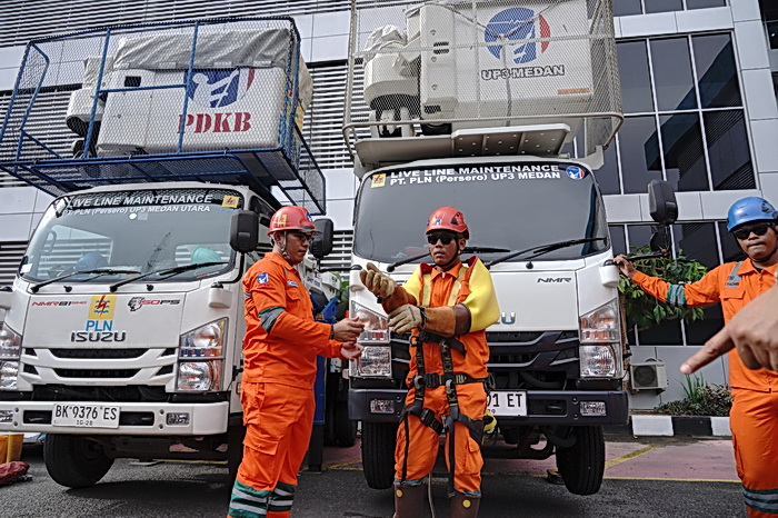 topmetro.news, Medan – PT PLN (Persero) Unit Induk Distribusi (UID) Sumatera Utara melalui Unit Pelaksana Pelayanan Pelanggan (UP3) Medan, melaksanakan pemeriksaan menyeluruh terhadap peralatan Pekerjaan Dalam Keadaan Bertegangan (PDKB).