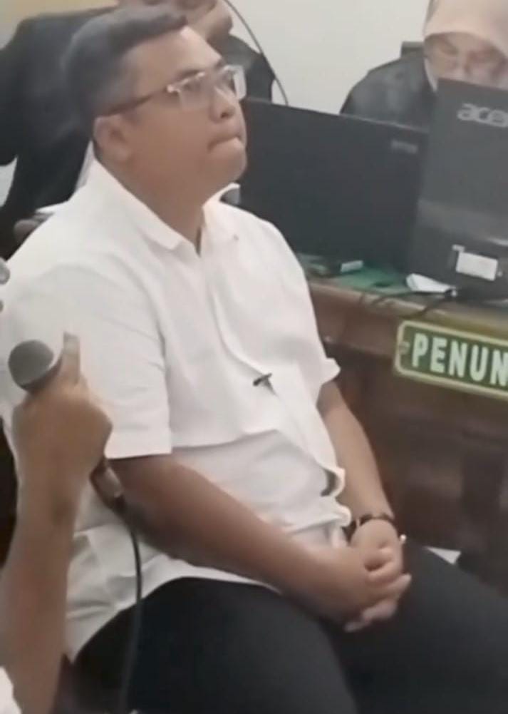 Dia digelandang untuk hadir sebagai saksi atas terdakwa Dirut PT Dalihan Na Tolu Grup, Muhammad Akhirun Piliang alias Kirun, dan Dirut PT Rona Mora, Muhammad Rayhan Dulasmi.