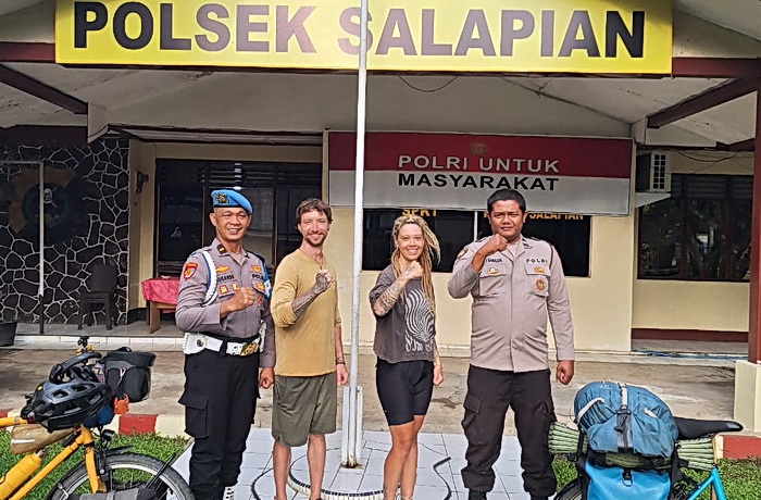 “Benar, ada dua turis asal Jerman bernama Fablo dan Julia. Mereka berdua mengucapkan terima kasih kepada Polsek Salapian yang sudah menyambut mereka dengan baik dan ramah, serta menawarkan untuk istirahat di Mapolsek Galing,” ujar Iptu Jekson.