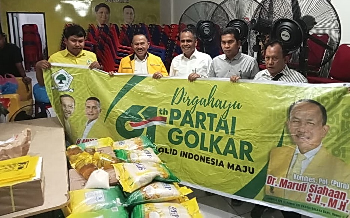 topmetro.news, Medan – Anggota DPR RI Kombes Pol (Purn) Dr Maruli Siahaan turut berpartisipasi aktif dengan menyerahkan bantuan sosial dalam rangka memperingati HUT ke-61 Partai Golkar.