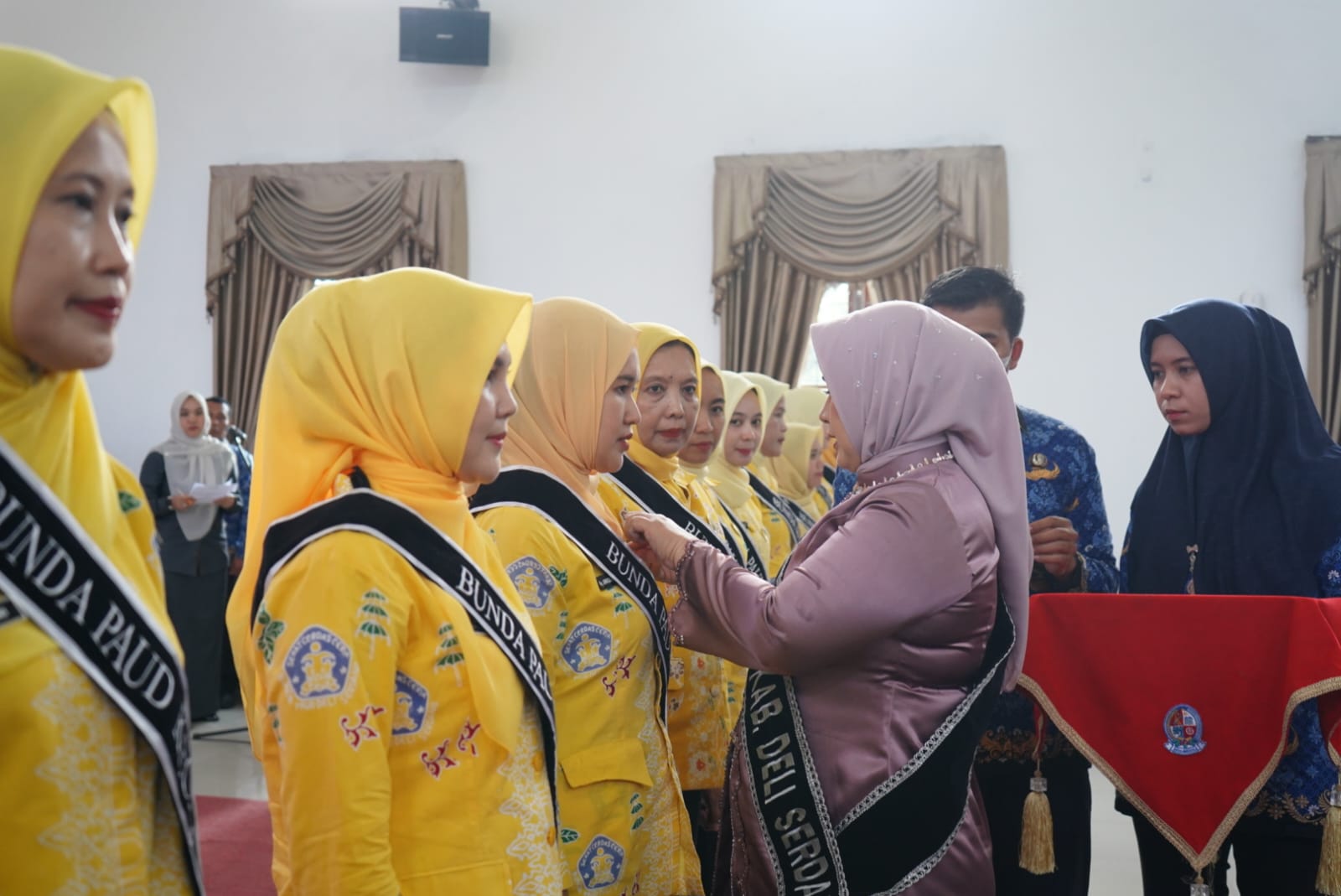 Setelah dikukuhkan, Ny Jelita yang juga Bunda Pendidikan Anak Usia Dini (PAUD) Deli Serdang ini mengukuhkan Bunda PAUD se-Kecamatan dan Pengurus Dewan Kerajinan Nasional Daerah (Dekranasda) Deli Serdang masa bakti 2025–2030.
