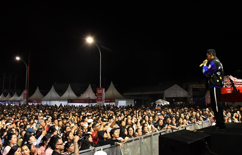 topmetro.news, Samosir – Malam puncak hiburan Trail of The Kings (TOTK) 2025 di Waterfront Pangururan berlangsung spektakuler, Minggu (19/10/2025) malam. Diperkirakan 6 ribuan warga dan wisatawan memenuhi kawasan tepi Danau Toba untuk menikmati konser megah yang menghadirkan artis lokal dan nasional.