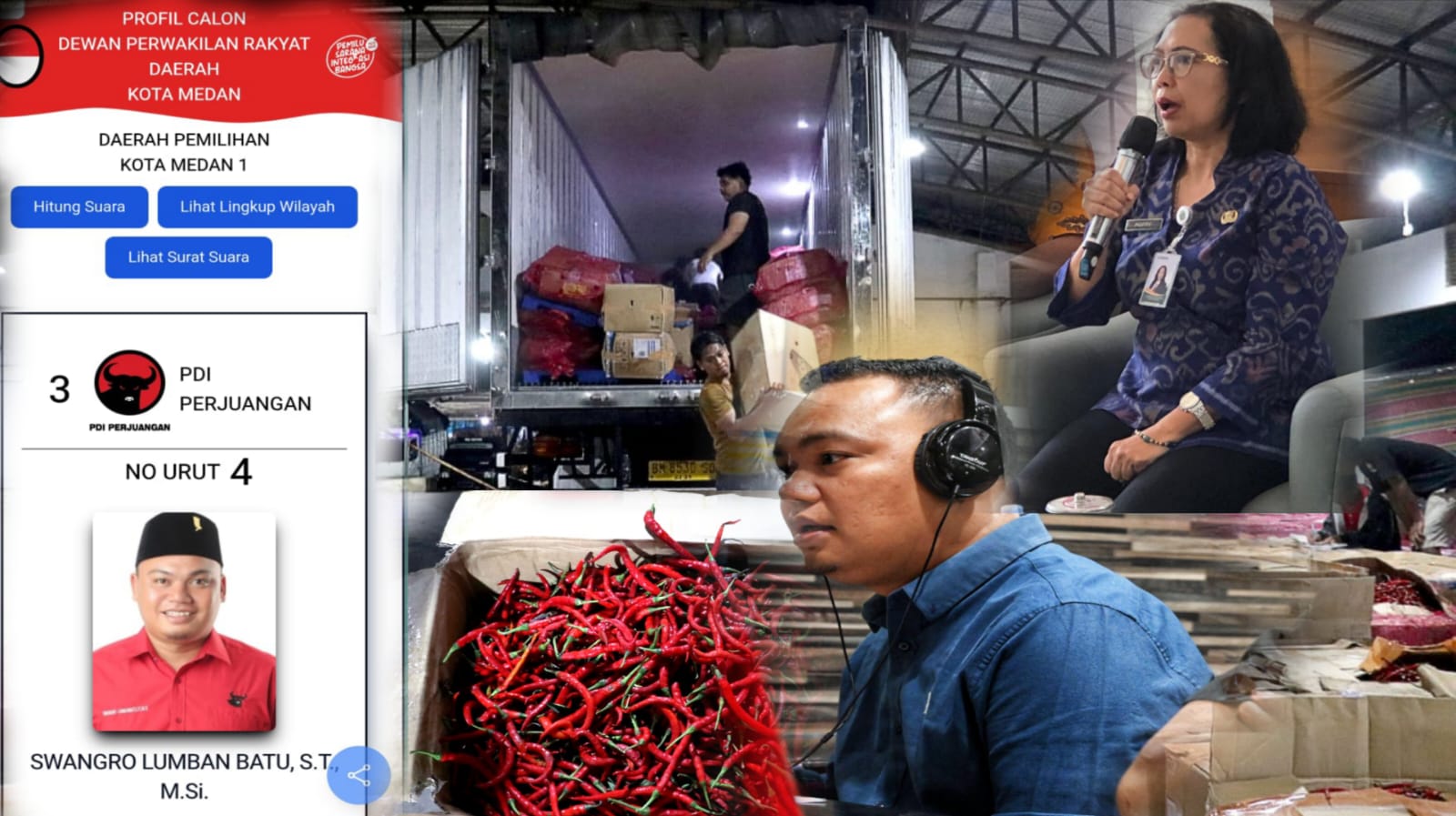 Kolase foto Kabiro Perekonomian Poppy Hutagalung, Dirut AIJ Swangro Lumbanbatu yang sebelumnya mantan caleg gagal, berlatarbelakang pengadaan cabai merah untuk menekan laju inflasi.