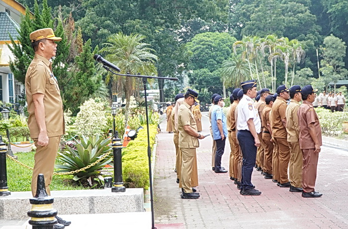 Pesan itu disampaikan melalui Sekda Langkat H Amril SSos MAP, saat memimpin apel gabungan ASN di halaman kantor bupati setempat, Senin (3/11/2025).