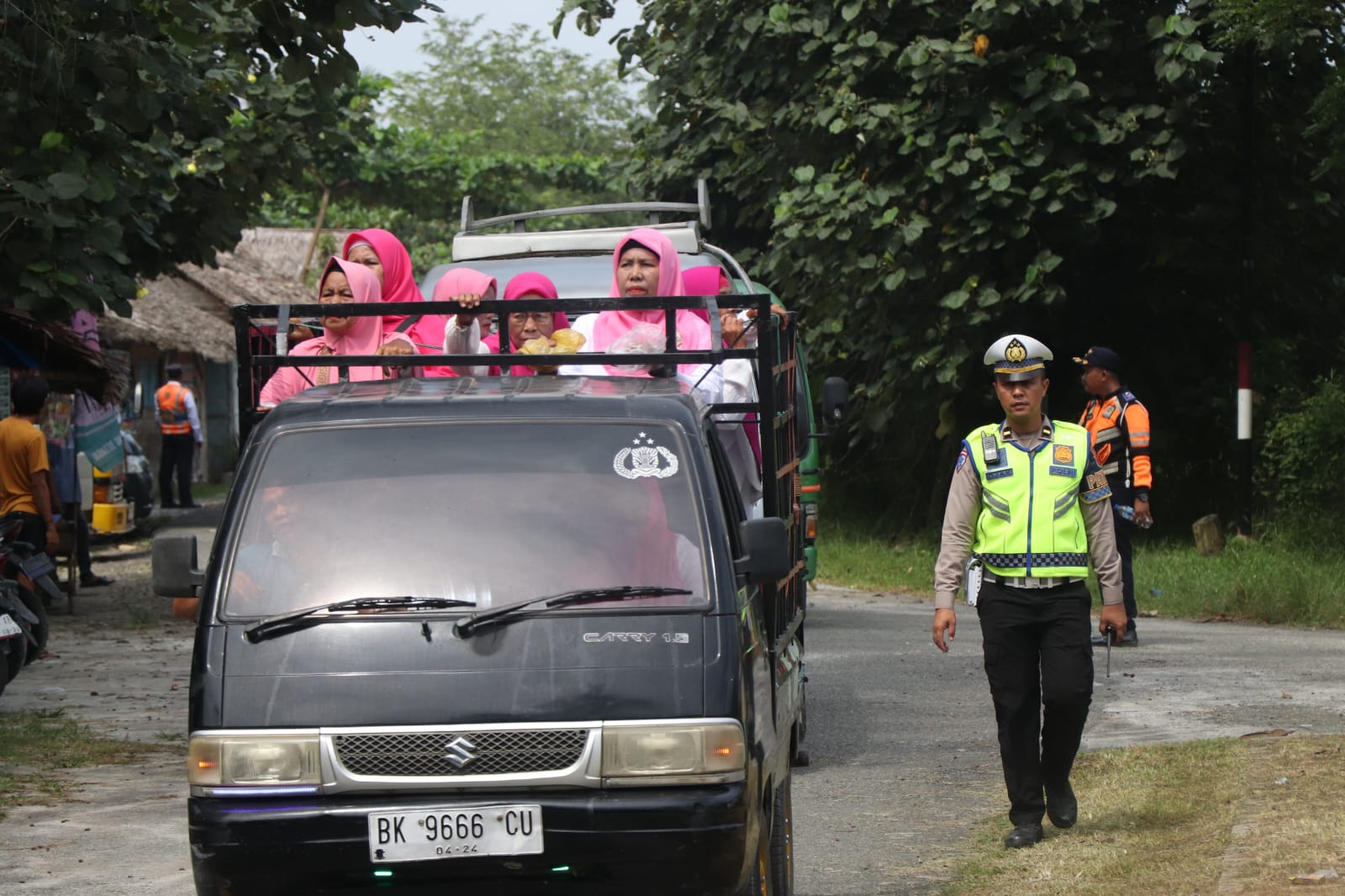 Untuk memastikan kelancaran dan keamanan selama kegiatan berlangsung, personel Sat Lantas Polres Sergai diterjunkan di sejumlah titik strategis. Mereka bertugas mengatur arus kendaraan, membantu jamaah yang menyeberang jalan, serta mengantisipasi terjadinya kemacetan.