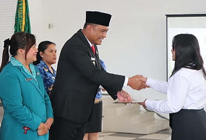 topmetro.news, Toba – Bupati Toba Effendi Sintong P Napitupulu bersama Wakil Bupati Audi Murphy O Sitorus, Ketua DPRD Franshendrik Tambunan, Pj Sekda Paber Napitupulu, Ketua TP PKK Astita Effendi Sintong Napitupulu, dan Kepala Bank Sumut Cabang Balige menyerahkan SK PPPK (Pegawai Pemerintah dengan Perjanjian Kerja) Guru, Kesehatan, dan Teknis Tahap II Formasi 2024, di Pendopo Rumah Dinas Bupati Toba, Senin (10/11/2025).
