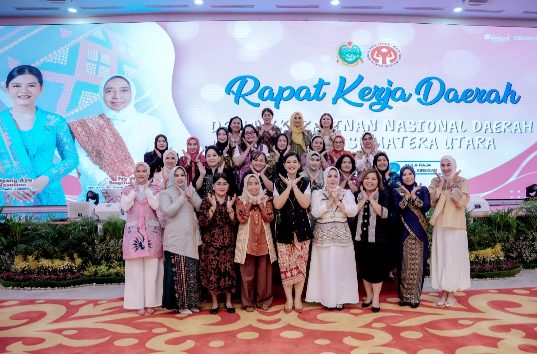 Rakorda turut dihadiri Wakil Ketua Dekranasda Sumut Titek Sugiharti, pimpinan OPD Sumut dan kabupaten/kota, serta Ketua dan pengurus Dekranasda se-Sumut.