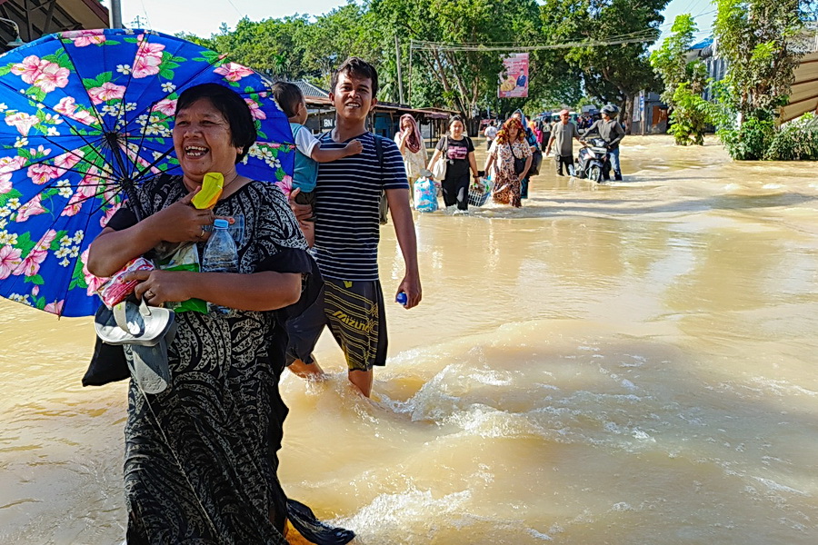 “Sudah enam hari (banjir), mulai dari hari Rabu kemarin. Semalam ada bantuan pangan masuk dari relawan-relawan gitu. Kalau bantuan dari pemerintah, baru hari ini lah masuk. Karena memang di sekitar sini semua terkepung air,” kata salah seorang warga yang mengungsi di Masjid At Taqwa.