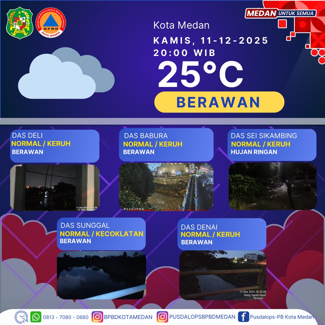 BPBD Kota Medan mengajak warga untuk terus mengikuti informasi resmi terkait cuaca dan kondisi sungai. Pemantauan intensif tetap dilakukan sebagai langkah mitigasi untuk meminimalkan risiko bencana hidrometeorologi yang dapat muncul selama musim penghujan.