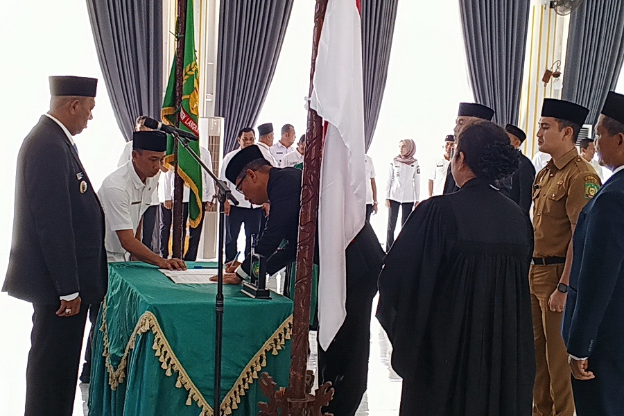 topmetro.news, Langkat – Bupati Langkat H Syah Afandin SH, mengambil sumpah/janji, dan melantik Pejabat Tinggi Pratama, Pejabat Administrator, Pejabat Pengawas, dan Pejabat Fungsional jajaran Pemkab Langkat, di Aula Jentera Malay Rumah Dinas Bupati, Rabu (24/12/2025).