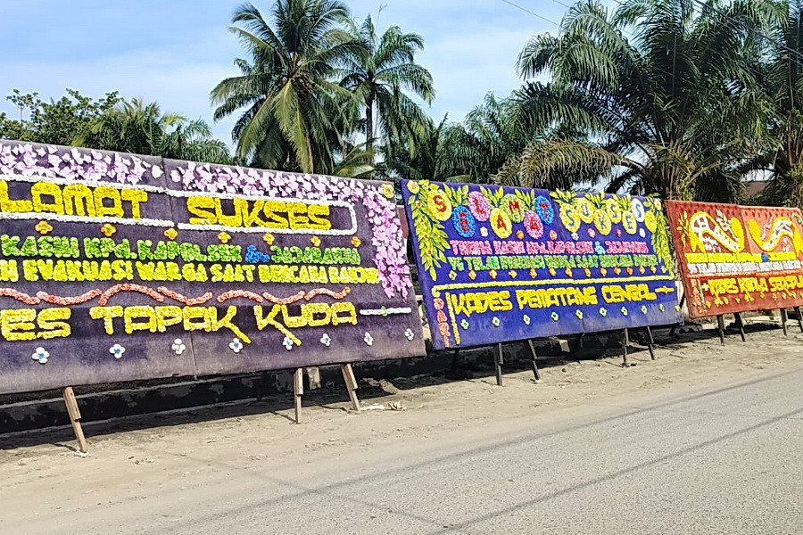 “Saya sempat kaget, kok banyak kali papan bunga. Semula saya mengira papan bunga itu diperuntukkan warga yang pesta. Eh, gak taunya berisikan ucapan terimakasih yang disampaikan para Kepala Desa atas upaya evakuasi warga yang kita lakukan saat banjir hebat kemarin,” ujarnya.