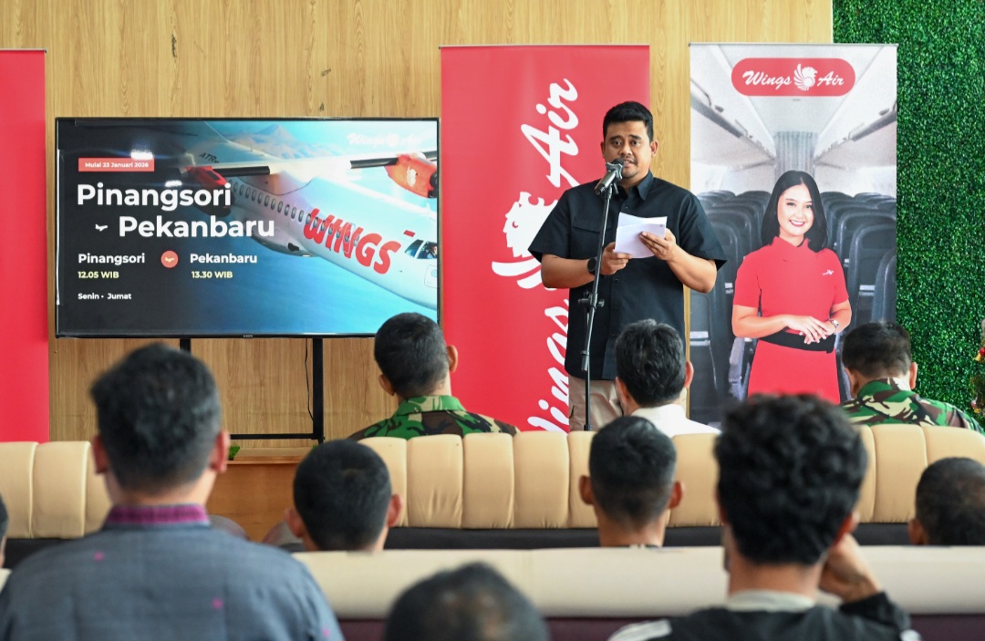 “Kalau bisa jangan mahal-mahal kali tiketnya Pak, kalau mahal ya namanya buka (rutenya) itu setengah-setengah,” kata Bobby Nasution kepada Direktur Produksi Wings Air Capt Fitzgerald Julian Rachman saat acara peresmian di Bandar Udara FL Tobing, Pinangsori, Kabupaten Tapanuli Tengah, Jumat (23/1/2026).