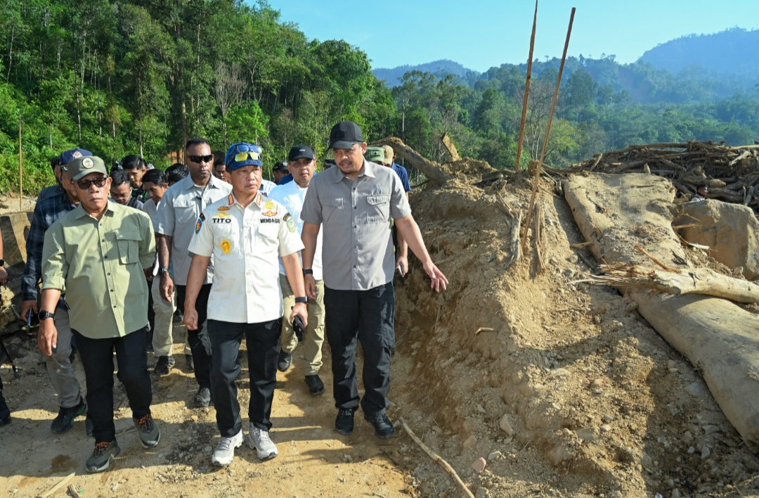 topmetro.news, Tapeng– Menteri Dalam Negeri (Mendagri) Tito Karnavian, selaku Ketua Satgas Rehabilitasi dan Rekonstruksi Pasca Bencana Sumatera, mengapresiasi kinerja Gubernur Sumatera Utara (Sumut) Muhammad Bobby Afif Nasution dan Bupati Tapanuli Tengah (Tapteng) Masinton Pasaribu. Tito salut dengan kinerja dan ide menggunakan sedimen sungai di Kecamatan Tukka, Tapanuli Tengah untuk menjadi tanggul.