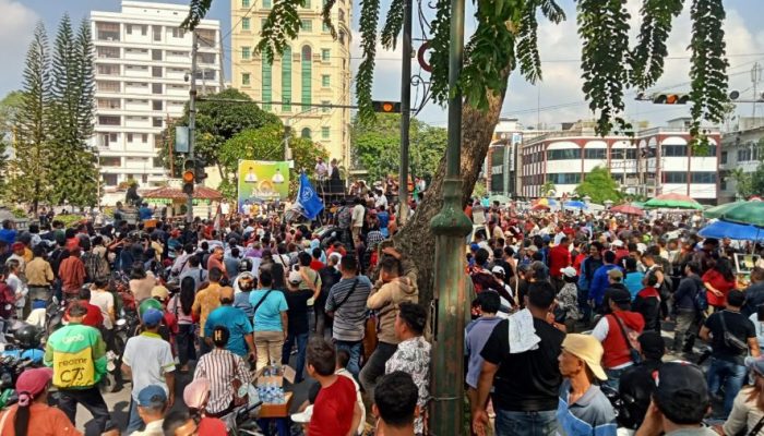 Sebelumnya, ribuan massa dari berbagao elemen ‘tumpah ruah’ di depan Kantor Wali Kota Medan, Kamis (26/2/2026), mulai pukul 14.00 WIB.