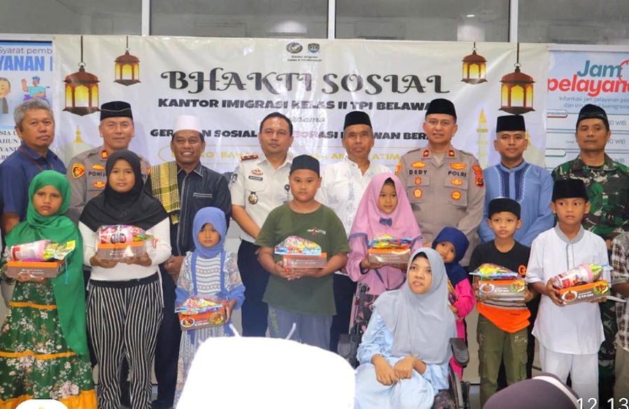 Pada kesempatan tersebut, Kantor Imigrasi Belawan memberikan santunan serta bingkisan kepada 100 anak yatim piatu yang tergabung dalam ‘Gerakan Sosial Kolaborasi Belawan Berkah’.