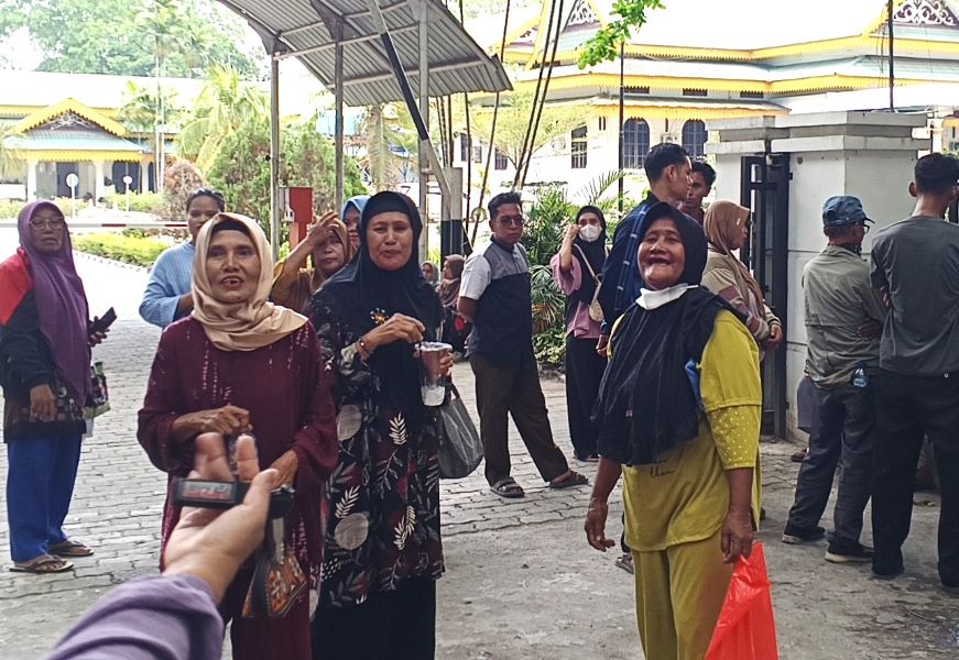 Merasa belum mendapatkan kejelasan dalam menyuarakan tuntutannya, ratusan para emak-emak tersebut melanjutkan aksi ke Gedung Jentera Malay Rumah Dinas Bupati Langkat.