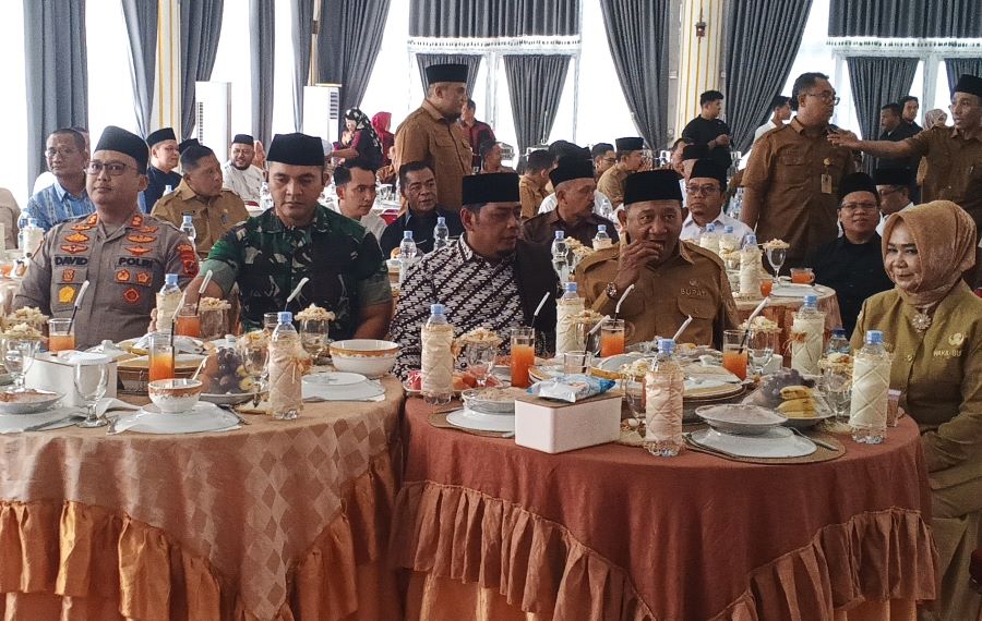 Kegiatan yang digelar dalam suasana hangat dan penuh kekeluargaan ini menjadi momentum penting untuk mempererat silaturahmi antara pemerintah daerah, unsur Forum Koordinasi Pimpinan Daerah (Forkopimda), serta seluruh elemen masyarakat setelah menjalani ibadah puasa Ramadhan.