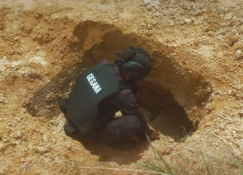 Setibanya di lokasi, tim langsung melakukan identifikasi mendalam dan memastikan bahwa benda tersebut merupakan mortir dengan panjang sekitar 42 cm dan diameter 8 cm—sebuah ancaman nyata yang tidak bisa dianggap sepele. Dengan penuh ketelitian dan standar operasional tinggi, mortir tersebut kemudian diamankan dan dipindahkan ke lokasi disposal yang telah disiapkan.