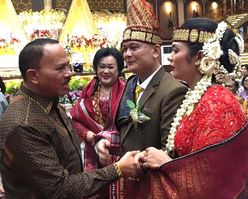 Pertama, Dr Maruli Siahaan menghadiri acara adat pernikahan Jefrianto Sembiring Kembaren SH MH dengan Iptu Reka Geofanni Gultom STrK SIK MH, di Bernada Hall Jalan Jamin Ginting No 181 Padang Bulan, Kota Medan.