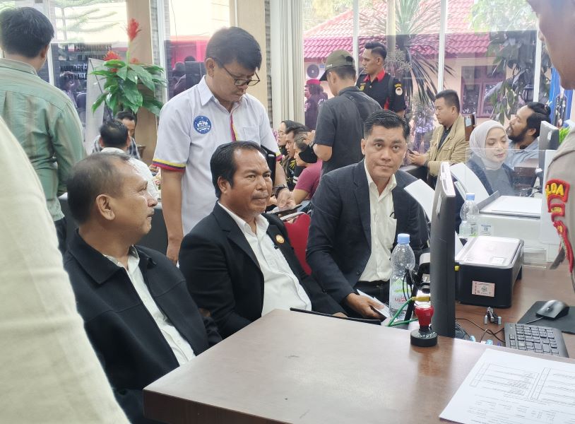 Pantauan media ini di Mapolda Sumut, Ketua Umum DPP HBB (Horas Bangso Batak) Lamsiang Sitompul SH MH bersama Satgas HBB dan puluhan massanya, terlihat turut mendampingi para pelapor.
