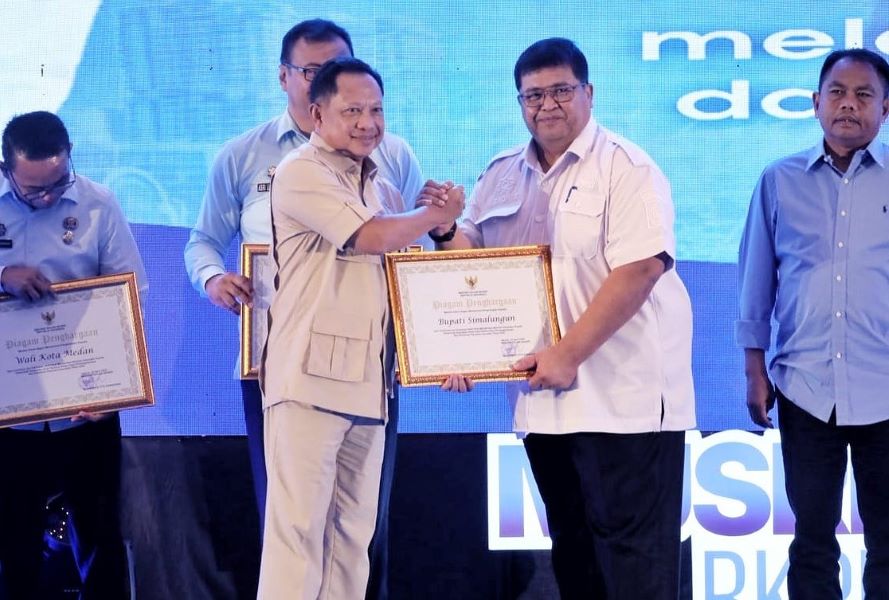 topmetro.news, Medan – Bupati Simalungun Dr H Anton Achmad Saragih, menerima penghargaan dari Kemendagri RI, dalam acara Forum Musrenbang Rencana Kerja Pembangunan Daerah (RKPD) Sumatera Utara Tahun 2027, di Hotel Santika Premiere Dyandra Medan, Rabu (22/4/2026).