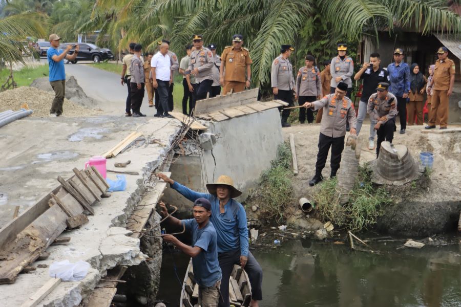 Kehadiran Kapolres Langkat di lokasi juga memberikan semangat kepada personel, Forkopimca, pemerintah desa dan masyarakat yang bergotong royong melakukan perbaikan jembatan.