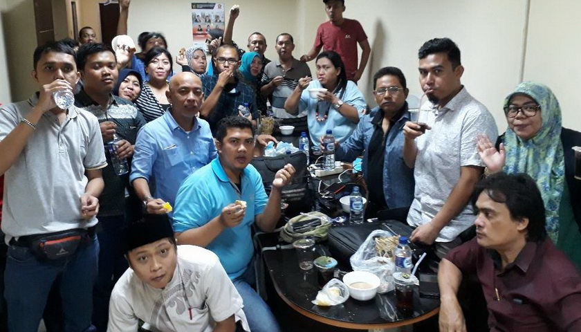 topmetro.news – Para jurnalis yang tergabung dalam Koordinator Wartawan Unit DPRD Medan menggelar acara berbuka puasa bersama di ‘pressroom’ Gedung DPRD Kota Medan, Kamis (31/5/2018).