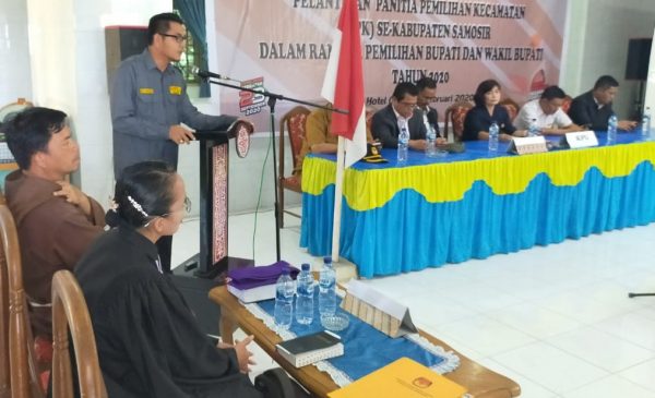 topmetro.news – KPU Samosir melantik anggota PPK Pilkada Samosir 2020, yang dilangsungkan di Aula Hotel Gorat, Kecamatan Palipi, Sabtu (29/2/2020).