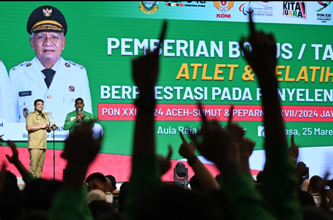 topmetro.news – Gubernur Sumatera Utara Bobby Afif Nasution akhirnya memberikan bonus dan tali asih kepada atlit Pekan Olah Raga (PON) 2024 dan atlit Peparnas 2024 peraih medali emas, perak dan perunggu yang dilangsungkan di Aula Raja Inal Siregar (RIS), Selasa (25/3/2025). Pemberian tali asih itu sebagai apresiasi kepada Atlet dan Pelatih Berprestasi di PON 21 Aceh dan PEPARNAS 17 Solo…