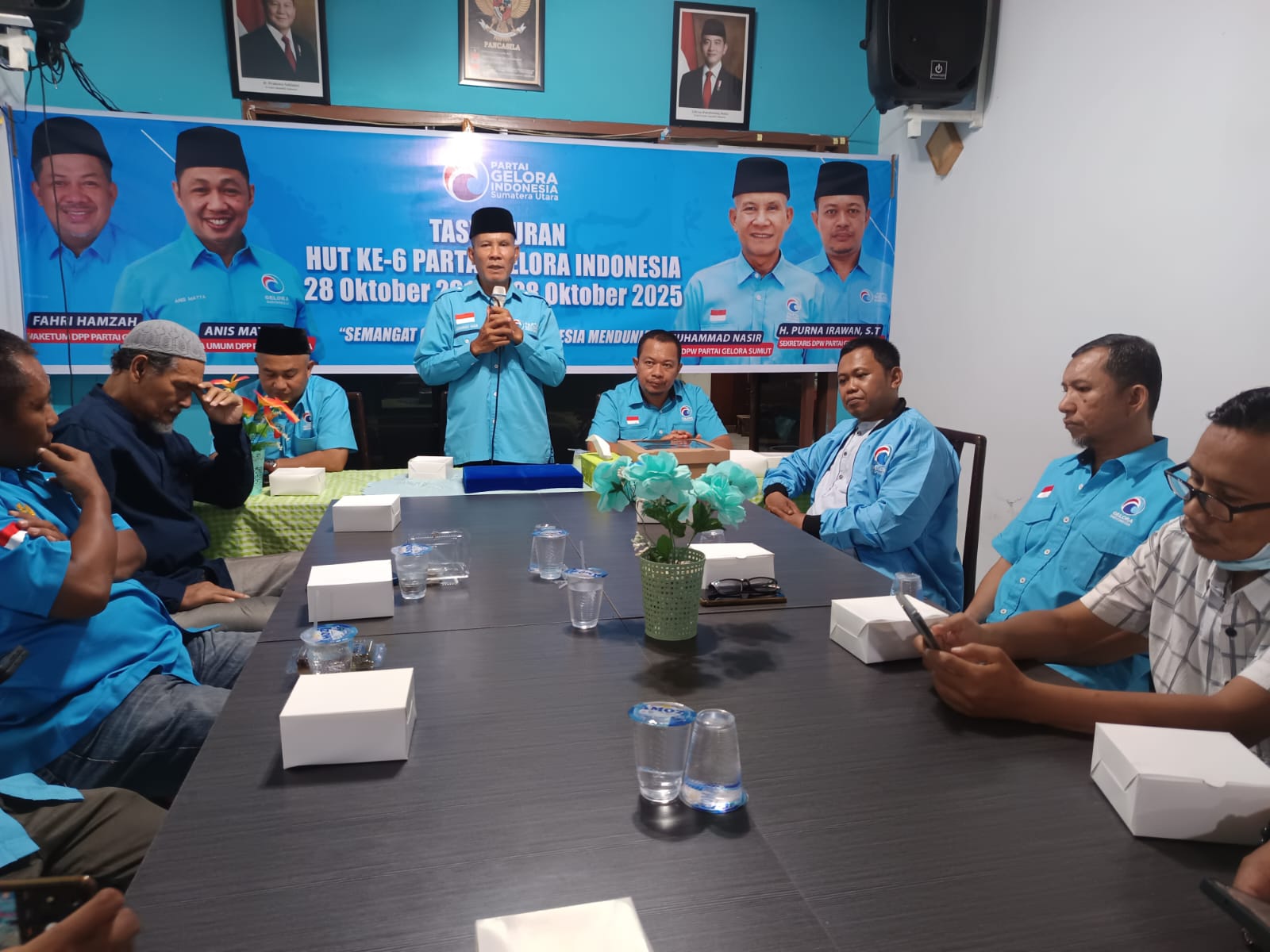 topmetro.news, Medan— Partai Gelombang Rakyat (Gelora) he Indonesia memperingati hari jadinya yang ke-6 dengan menggelar tasyakuran bertema “Semangat Gelora untuk Indonesia Mendunia”, Senin (28/10/2025), di Kantor DPW Partai Gelora Sumatera Utara, Jalan Pencak Kota Medan, bertepatan dengan momentum Hari Sumpah Pemuda. Kegiatan yang berlangsung penuh semangat ini dihadiri Ketua DPW Partai Gelora Sumatera Utara, Muhammad Nasir, didampingi Sekretaris Purna Irawan…
