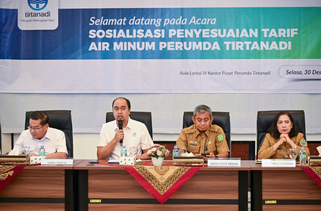topmetro.news, Medan– Perusahaan Umum Daerah (Perumda) Tirtanadi Provinsi Sumatera Utara (Sumut) melakukan sosialisasi perubahan/penyesuaian tarif air bersih kepada masyarakat di Kantor Pusat Perumda Tirtanadi, Jalan Sisingamangaraja No 1 Medan, Selasa (30/12/2025). Bagi masyarakat berpenghasilan rendah (MBR) ada penurunan harga dari tarif sebelumnya. Direktur Utama (Dirut) Perumda Tirtanadi Ardian Surbakti mengatakan, perubahan tarif tersebut telah melalui kajian mendalam, dengan berbagai pertimbangan…