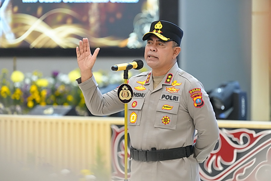 topmetro.news, Medan – Kapolda Sumatera Utara Irjen Pol Whisnu Hermawan Februanto SIK MH memimpin langsung rangkaian serah terima jabatan (sertijab) dan pengukuhan Pejabat Utama (PJU) serta Kapolres jajaran Polda Sumut yang digelar di Aula Tribrata Lantai I Mapolda Sumut, Kamis (8/1/2026). Rangkaian mutasi, rotasi, dan promosi jabatan ini tertuang dalam Surat Telegram Kapolri Nomor ST/2871A, ST/2871B, ST/2871C, dan ST/2871D/XII/KEP./2025, dengan…