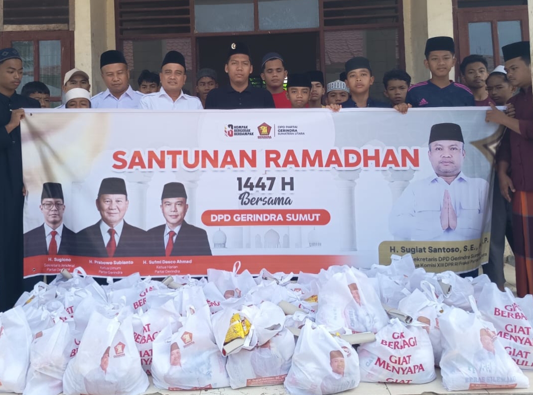 topmetro.news, Medan – Dewan Pimpinan Daerah (DPD) Partai Gerindra Sumatera Utara menunjukkan kepedulian sosialnya di Bulan Suci Ramadan dengan menyalurkan bantuan ke sejumlah panti asuhan yang tersebar di wilayah Medan, Binjai, dan Langkat. Penyerahan bantuan ini dipimpin langsung oleh Sekretaris DPD Gerindra Sumut, Sugiat Santoso. Kegiatan yang berlangsung khidmat ini menyasar anak-anak yatim piatu sebagai bentuk nyata kehadiran partai di…