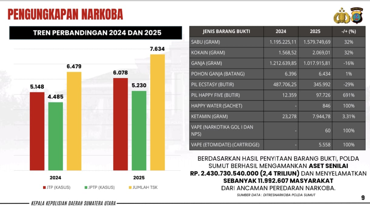 Read MorePolda Sumut Catat Lonjakan Pengungkapan Kasus Narkoba, Selamatkan Hampir 12 Juta Jiwa di 2025