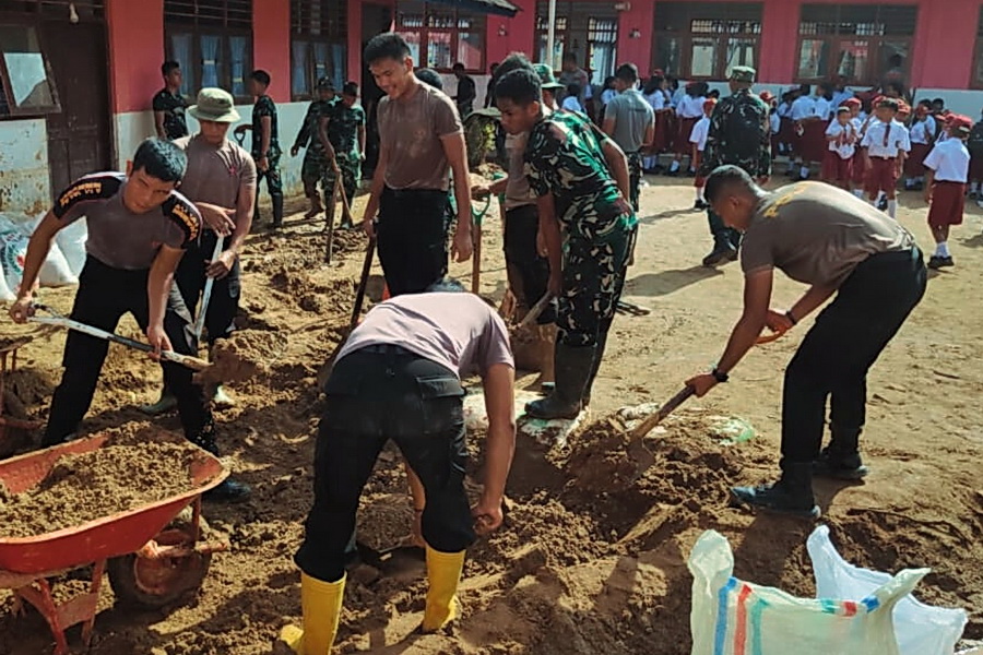 Sekolah Terdampak Bencana Dibersihkan, Brimob-TNI Percepat Pemulihan Pendidikan di Tapteng