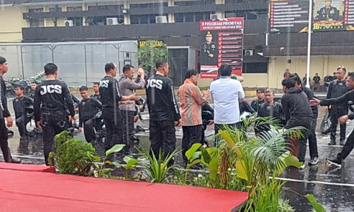 topmetro.news, Medan – Kapolrestabes Medan Kombes Pol Dr Jean Calvijn Simanjuntak membentuk Timsus (Tim Khusus) JCS (Jaga, Cegah dan Sigap). Acara tradisi dan Pengukuhan Tim Khusus (Timsus) JCS berlangsung di halaman Apel Polrestabes Medan, Sabtu (6/12/2025). Tim ini dibentuk sebagaij satuan reaksi cepat untuk penanganan kejahatan jalanan di Kota Medan. Meski diguyur hujan, acara pengukuhan yang dipimpin Kapolrestabes Medan Kombes…