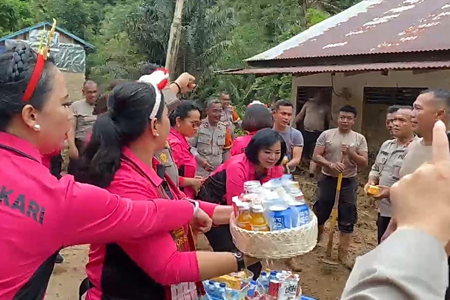 topmetro.news, Taput – Di tengah kelelahan personel Polri yang berjibaku membantu membersihkan rumah-rumah warga terdampak banjir dan tanah longsor, kepedulian dan perhatian datang dari Keluarga Besar Bhayangkari. Ketua Bhayangkari Daerah Sumatera Utara melalui pengurus Bhayangkari Daerah Sumut menyalurkan bantuan logistik makanan kepada personel yang bertugas di Kecamatan Adiankoting, Kabupaten Tapanuli Utara, Kamis (18/12/2025). Bantuan berupa bingkisan makanan tersebut diserahkan langsung…