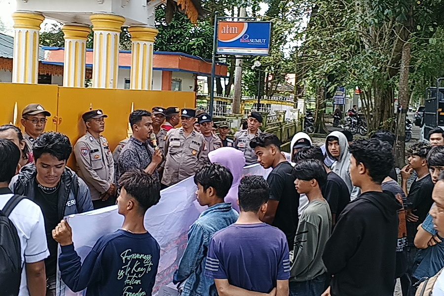 topmetro.news, Langkat – Sekelompok aktivis mahasiswa melakukan aksi demo ke Kantor Bupati Langkat, Senin (5/1/2026), sekira pukul 14.30 WIB. Kelompok mahasiswa ini membawa isu operasional Diskotik Blue Night yang berlokasi di Kecamatan Sei Bingai Kabupaten Langkat. Anehnya, bersama puluhan mahasiswa ini, terlihat sebahagian besar peserta aksi yang masih di bawah umur berbaur, sembari berupaya menyembunyikan wajahnya dari sorotan kamera wartawan…